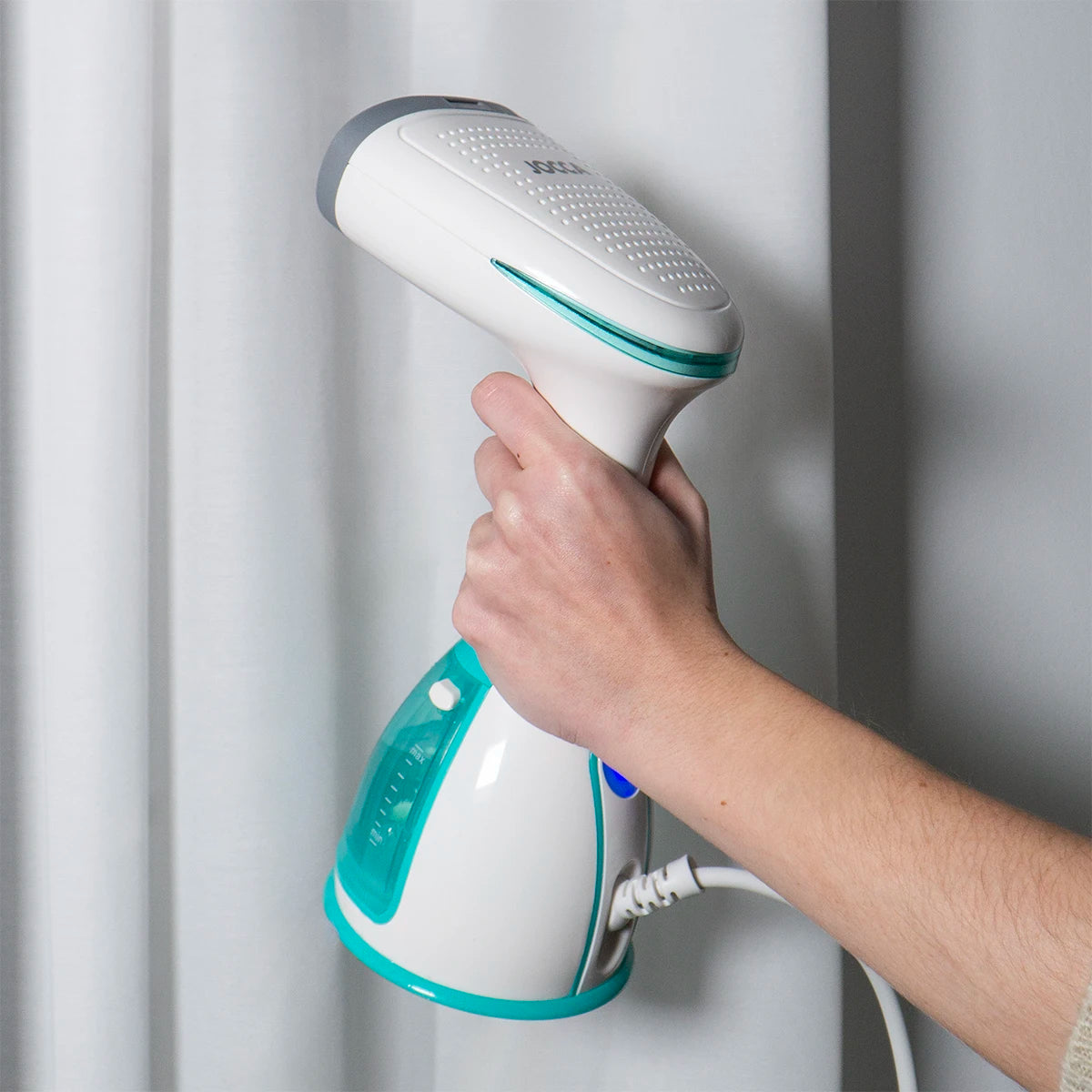 Jocca vertical steam iron with ergonomic handle to remove wrinkles, disinfect and deodorize clothes. 1500w of power, anti-drip system, heats in 45 seconds, 280ml capacity, weighs only 1kg and comes with accessories